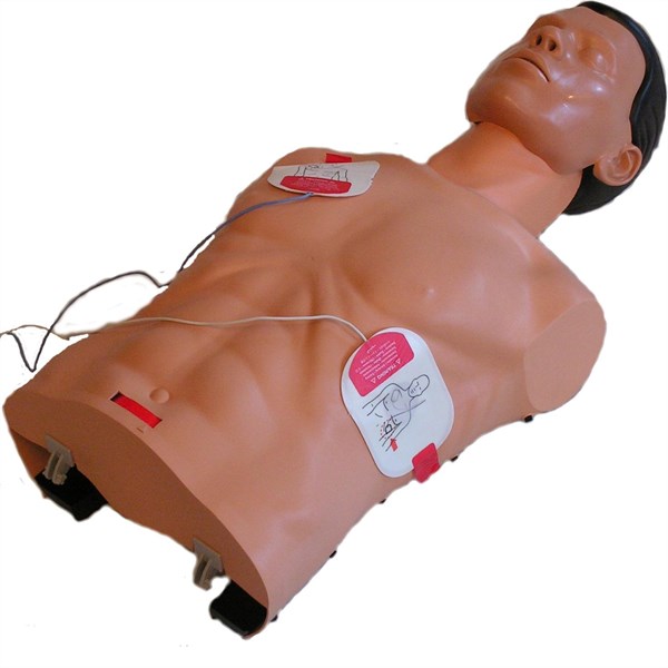 Der neue Ambu SAM (Simple AED Manikin) ist ein kosteneffizientes und kompaktes Trainingsgerät, mit dem der komplette BLS-Algorithmus gemäß den neuen Leitlinien ERC 2010 erlernt werden kann. Dank seines geschlossenen Torsos kann die Nutzung eines Trainings-AEDs und die Platzierung der AED Pads optimal trainiert werden. Das Gerät verfügt über eine Anzeige, die dem Übenden Feedback bezüglich der Kompressionstiefe gibt. Man kann sowohl das Ausatmen durch Mund und Nase hören als auch das Heben und Senken des Brustkorbs sehen. Die Beatmung erzeugt einen realistischen Atemwegswiderstand und ist nur bei korrekter Kopfüberstreckung möglich. Das patentierte Ambu Hygienesystem ist anwenderfreundlich und erhöht dank Einwegluftbeutel und desinfizierbaren Gesichtsmasken die Sicherheit der Kursteilnehmer. Eine aufwendige Innenreinigung des Trainingsgerätes entfällt somit. Zudem kann Ambu SAM einfach verstaut werden, da der Kopf platzsparend im Torso untergebracht wird. Eigenschaften. Gemäß den neuen Leitlinien ERC 2010, realistische Platzierung der Trainings-AED Pads, geschlossener Torso , realistischer Atemwegswiderstand, Kompression mit Feedbackanzeige, BLS-Algorithmus Training, Ambu Hygienesystem, leicht und kompakt, sichtbares Heben und Senken des Brustkorbs, hörbares Ausatmen durch Mund und Nase. Abmessungen 70 cm x 33 cm x 20 cm, Gewicht ca. 2 kg, max. Beatmungsvolumen: 1,8 Liter, max. Kompressionstiefe: 7.5 cm, Kontrollanzeige Kompression, Hygienesystem Ambu Man kompatibel.