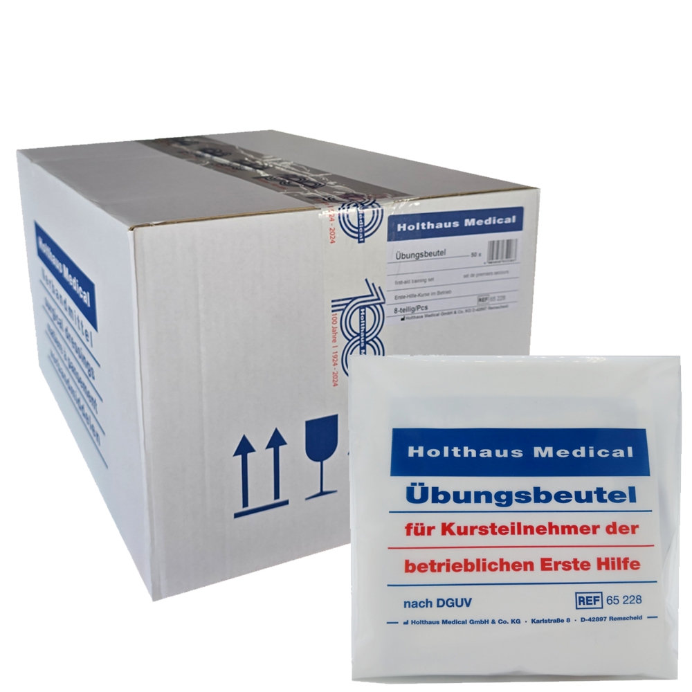 Übungsbeutel für Ausbildungszwecke im Erste Hilfe Bereich und für EH Kurse. Günstiges Material, keine extra billigen und einfachen Übungsmaterialgrößen sondern normales Verbandmaterial wie im Verbandkasten enthalten ist. Inhalt: