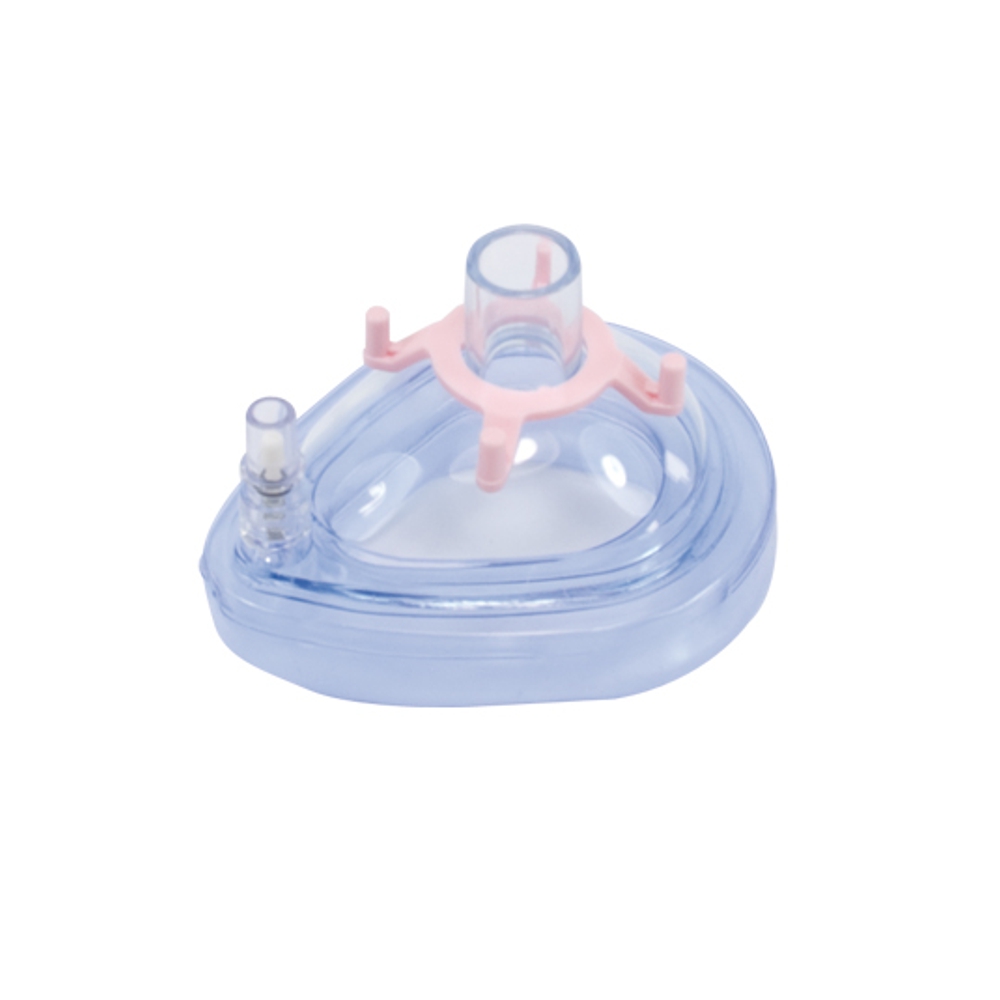Beatmungsmasken aus latexfreiem PVC. Mit Klarsichtkörper und aufblasbarer Lippenwulst aus PVC, mit Ventil oder MRT-fähigem Silikonventil, Einwegprodukt. Farbcodierte Befestigungshaken aus Polyethylen.