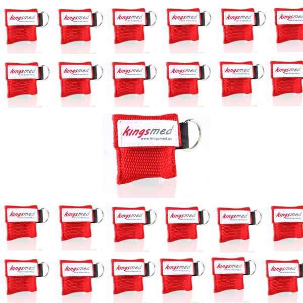 25 x kingsmed® Notfall-Beatmungstuch rot im Softcase Schlüsselanhänger