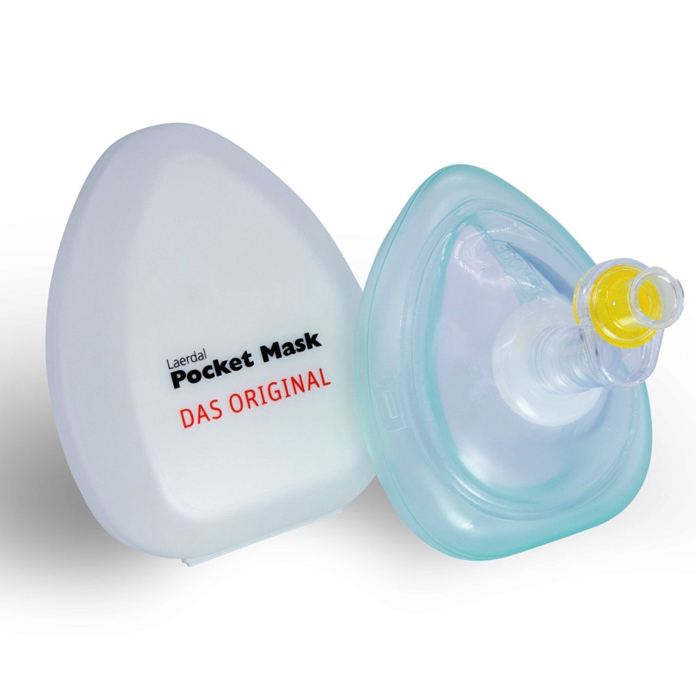 Der weltweite Dauerrenner - die Laerdal Taschenmaske. Taschenmaske mit einem Einweg-Ventil und austauschbaren fortschrittlichen PIB 118 Filter zum Einmalgebrauch. Ein luftgefüllter Maskenwulst sichert eine einfache und optimale Abdichtung, während der Abstand zum Patienten es dem Helfer ermöglicht, die Bewegungen des Brustk orbs zu überwachen. Inklusive Einweg-Handschuhe. Alle Materialien sind latex-frei.