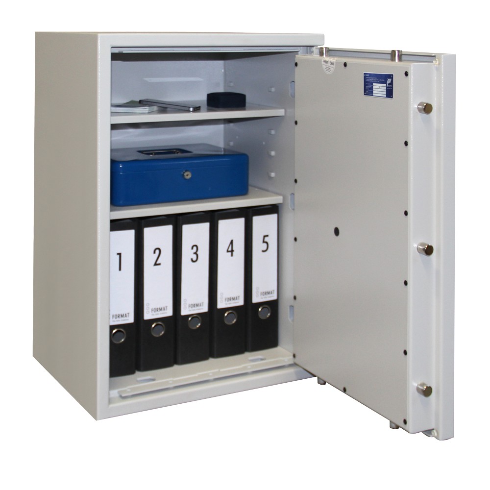 Wertschutzschrank "Made in Germany" nach EN 1143-1 Widerstandsgrad 1. Perfekt als Möbeleinsatztresor verwendbar durch spezielle Maße und geringes Gewicht. Unser BTM Buch DIN A4 kann eingelegt werden. Die Klassifizierung entspricht den Anforderungen nach § 15 des BtmG, für z.B. Apotheken, Altenheime und Kliniken. Serienmäßig mit Doppelbart-Hochsicherheitsschloss mit 2 Schlüssel (120 mm lang). Tür 3-wandig mit 3-seitiger Verriegelung durch Schließbolzen (Ø 20 mm) und starre Hintergreifprofile an der Bandseite. Türöffnungswinkel 180° durch speziell im Rahmen liegende Türbänder. Allseitig dreiwandiger Korpus. Serienmäßig ausgestattet mit 1 Bohrung hinter dem Türrahmen im Boden und 1 Bohrung in der Rückwand (mittig), inkl. Verankerungsmaterial. Farbe: RAL 7035 (lichtgrau). Maße Format Lyra 4: Innenmaße H 670 x B 411 x T 305 mm, Außenmaße H 750 x B 500 x T 420 mm.