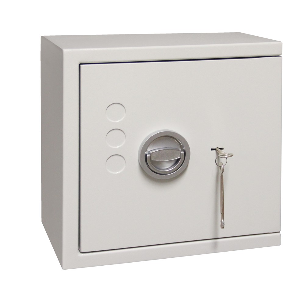 Wertschutzschrank "Made in Germany" nach EN 1143-1 Widerstandsgrad 0. Perfekt als Wandtresor und Möbeleinsatztresor verwendbar durch spezielle Maße und geringes Gewicht. Die Klassifizierung entspricht den Anforderungen nach § 15 des BtmG, für z.B. Apotheken, Altenheime und Teilbereiche von Kliniken. Serienmäßig mit Doppelbart-Hochsicherheitsschloss mit 2 Schlüssel (120 mm lang). Tür 3-wandig mit 3-seitiger Verriegelung durch Schließbolzen (Ø 20 mm) und starre Hintergreifprofile an der Bandseite. Türöffnungswinkel 180° durch speziell im Rahmen liegende Türbänder. Allseitig dreiwandiger Korpus. Serienmäßig ausgestattet mit 1 Bohrung hinter dem Türrahmen im Boden und 1 Bohrung in der Rückwand (mittig), inkl. Verankerungsmaterial. Farbe: RAL 7035 (lichtgrau). Maße Format Lyra 1: Innenmaße H 325 x B 311 x T 155 mm, Außenmaße H 405 x B 400 x T 270 mm.