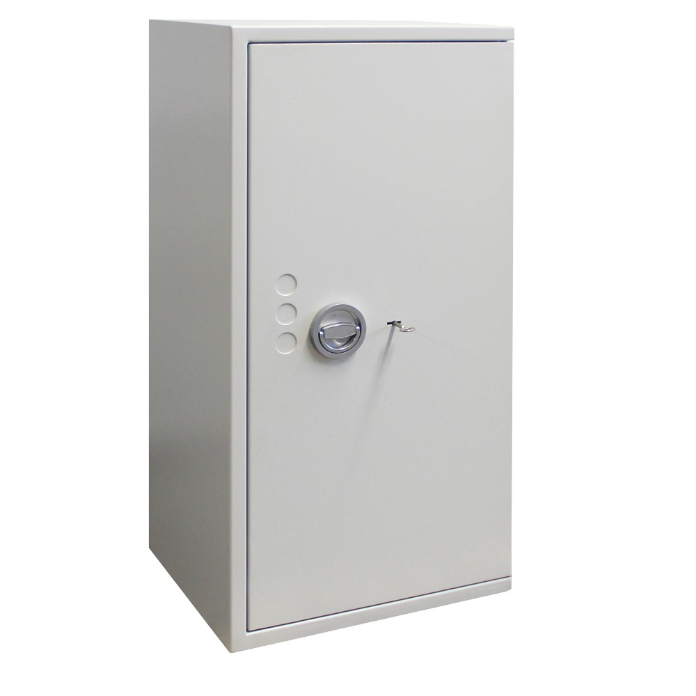 Wertschutzschrank "Made in Germany" nach EN 1143-1 Widerstandsgrad 0. Unser BTM Buch DIN A4 kann eingelegt werden. Die Klassifizierung entspricht den Anforderungen nach § 15 des BtmG, für z.B. Apotheken, Altenheime und Teilbereiche von Kliniken. Serienmäßig mit Doppelbart-Hochsicherheitsschloss mit 2 Schlüssel (120 mm lang). Tür 3-wandig mit 3-seitiger Verriegelung durch Schließbolzen (Ø 20 mm) und starre Hintergreifprofile an der Bandseite. Türöffnungswinkel 180° durch speziell im Rahmen liegende Türbänder. Allseitig dreiwandiger Korpus. Serienmäßig ausgestattet mit 1 Bohrung hinter dem Türrahmen im Boden und 1 Bohrung in der Rückwand (mittig), inkl. Verankerungsmaterial. Farbe: RAL 7035 (lichtgrau) . Maße Format Lyra 7: Innenmaße H 940 x B 411 x T 305 mm, Außenmaße H 1020 x B 500 x T 420 mm.