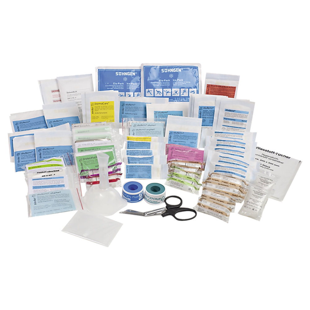 Ersatzfüllung für Erste Hilfe Koffer Schule, mit Kindgerechten Verbandstoffen. Spezialfüllung für Kinder und Jugendliche aller Altersstufen. Enthalten sind Kinderverbandstoffe in kindgerechten Ausführungen für jüngere Schüler sowie Verbände für junge Erwachsene. Eine ausgewogene Zusammenstellung für alle. Der Inhalt entspricht den Mindestanforderungen nach DIN 13157 hinsichtlich Ausführung und Qualität.