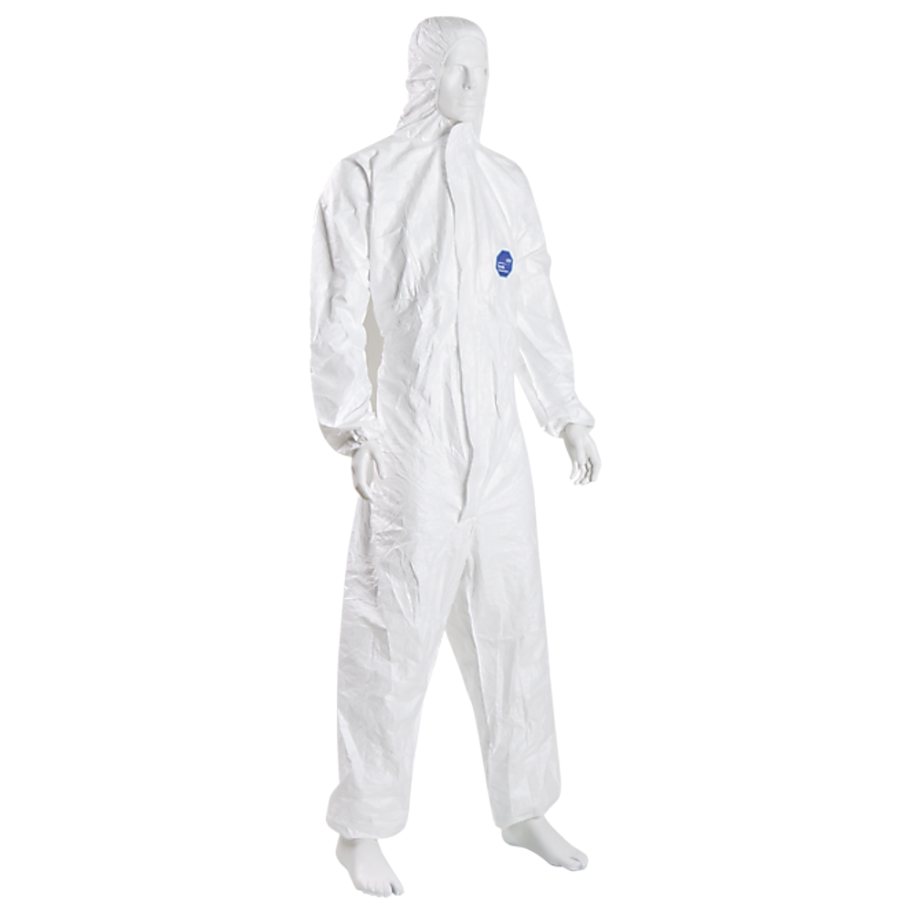 Tyvek Classic Schutzoverall. Original DuPont, mit Kapuze, Taillen- und Armgummi. Atmungsaktiv, reiß- und abriebfest, ausgezeichnete Barriere gegen Flüssigkeiten und Aerosole. Farbe weiß, antistatisch.