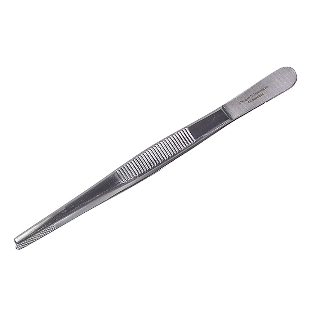 1 A-Stahl nach DIN, rostfrei, sorgfältig handwerklich gearbeitet, silbermatt glasperlengestrahlt, elektrochemisch passiviert, einzeln funktionsgeprüft, geeignet für den gesammten OP-Bereich und Zentralsterilisation, ca. 14 cm lang.