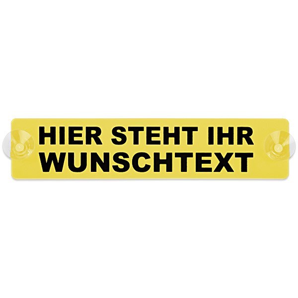 kingsmed ® Warnschild mit Wunschtext und 2 x Saugnapf 32 x 7 cm in gelb. Zur Befestigung an der Autoscheibe von Innen. Folgende Schriftfarben sind möglich: schwarz, rot, gelb, blau, grün und weiß.
