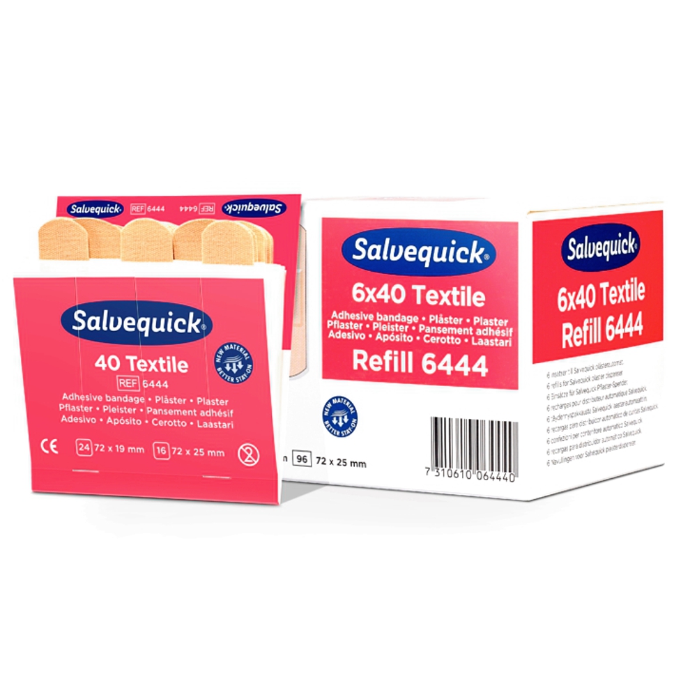 Salvequick Pflaster und Pflasterspender sind ein komplettes und leicht anzuwendendes System. Die Pflaster sind immer am Platz, fertig zur Anwendung. Die Refills sind in den Spendern arretiert, um Schwund zu vermeiden. Die Spender werden schnell und einfach mit einem Spezialschlüssel nachgefüllt. Salvequick Textilpflaster sind elastische Pflaster von hoher Qualität. Die Pflaster sind allergiegetestet. Sie können leicht appliziert werden und sind einfach anzuwenden. 6 Einsätze zu je 40 Pflaster, 24 St. 72 x 19 mm und 16 St. 72 x 25 mm.