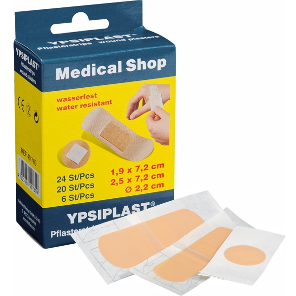 Aus elastischem, wasserfesten Polyethylen. Alle Pflaster sind einzeln eingesiegelt und lassen sich ohne Berührung der Kompresse applizieren. 50-teiliges Pflastersortiment bestehend aus: