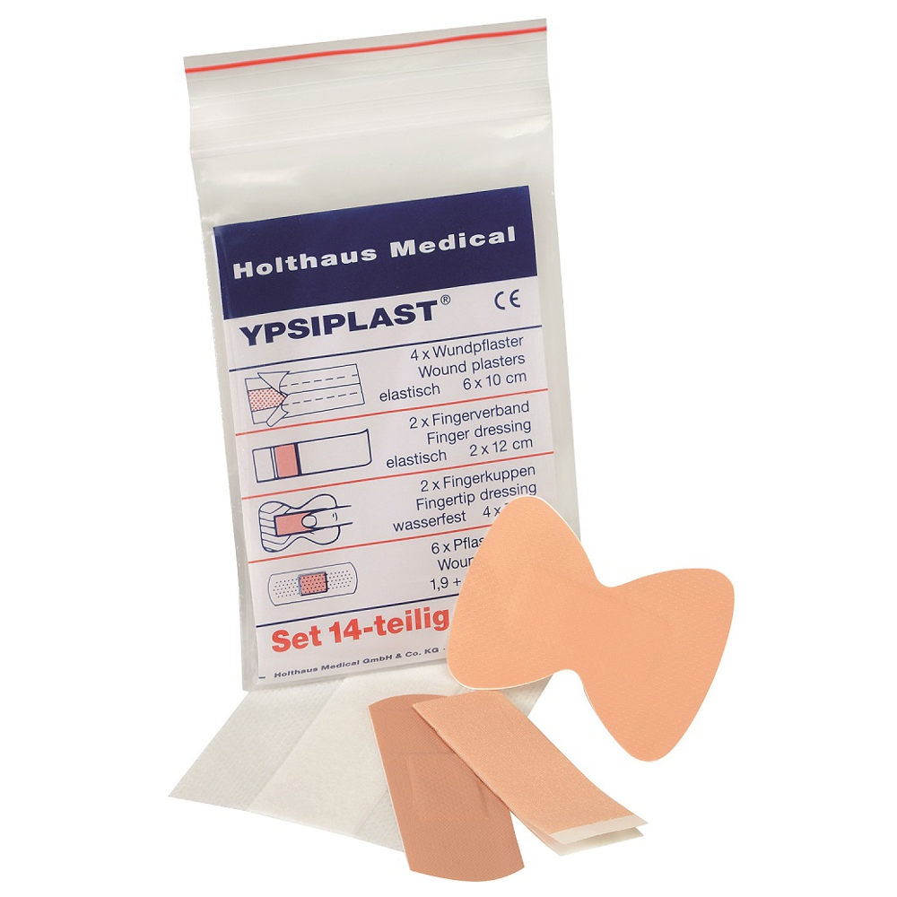 4 x Wundpflaster 6,0 x 10,0 cm 2 x Fingerkuppenverband 4,0 x 7,0 cm 2 x Fingerverband 2,0 x 12,0 cm 2 x Pflasterstrips 1,9 x 7,2 cm 4 x Pflasterstrips 2,5 x 7,2 cm