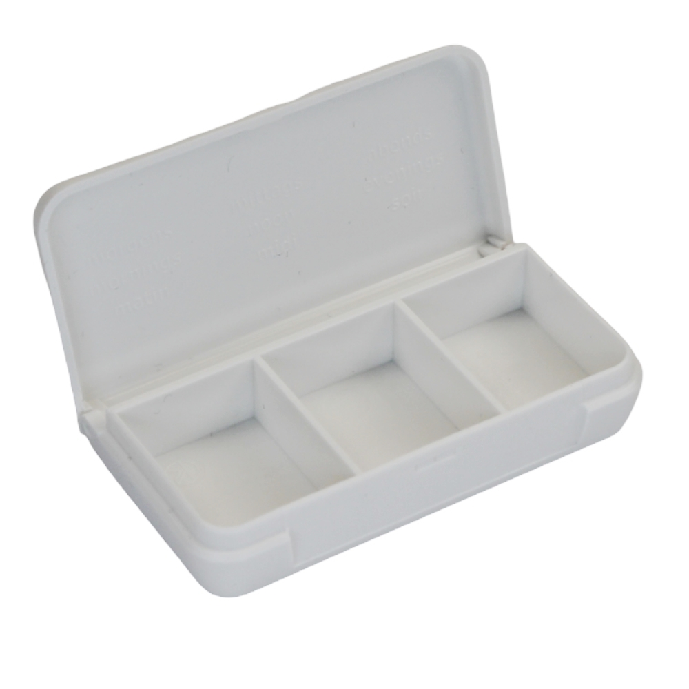 Tablettendose Medikamenten-Kasette, bruchsicher, keine Verpackungen der Medikamente mehr zu öffnen, handfreundlich, mit 3 Fächern. Ca 6.5 x 3.5 x 1.5 cm. Auch für größere Tabletten geeignet.