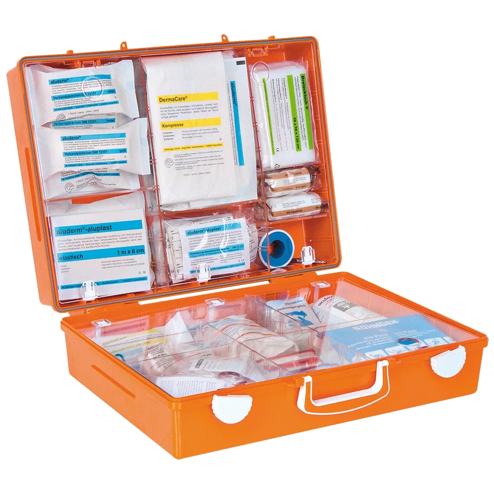 Mit Seniorenspezifischer Bestückung. Alle sterilen Verbandstoffe von SÖHNGEN sind mit einem Haltbarkeitsdatum von 20 Jahren versehen. Somit ist sichergestellt, dass die Verbandstoffe im Normalfall innerhalb des Verwendungszeitraumes verbraucht sind. Es entfallen aufwendige Überwachungs- und Austauschaktionen, sowie vermeidbare Entsorgungsmaßnahmen.