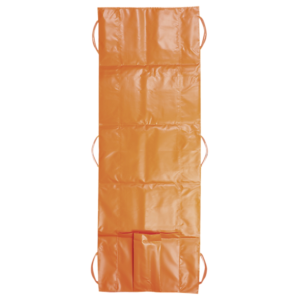 An jeder Längsseite drei Tragegriffe, mit Kunststoffschlauch verstärkt, mit Fußtasche, sowie Hohlsaum zum Durchschieben einer Tragestange- Materialqualität: Polyester-Hochfestgewebe, oberflächenversiegelt, Farbe orange, Flächengewicht 650 g/m2, LKW-Planenqualität, temperaturbeständig, reißfest, schwer entflammbar, schmutzabweisend, pflegeleicht, Maße: 2.000 x 700 mm.