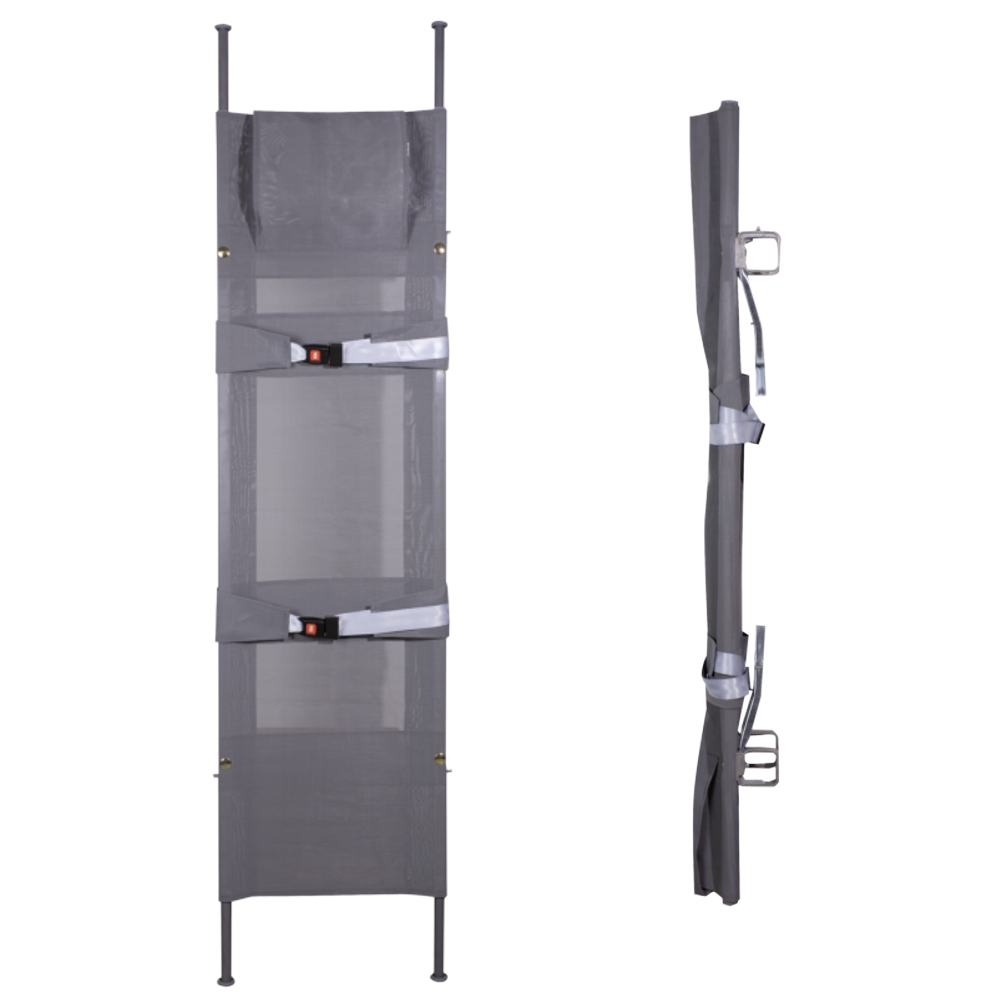 Maße: 2.302 x 556 x 137 mm, Faltmaß: 1.920 x 150 x 145 mm. Nach DIN 13024. Nahtlose Aluminium-Vierkantprofile, hochbelastbar, verriegelbare Stahlgelenke, Tragegriffe einschiebbar. Patienten-Sicherungsgurte mit Schnellverschlüssen. Tragenbezug monofiles Polyäthylengewebe, thermofixiert, atmungsaktiv, pflegeleicht, desinfizierbar, verrottungsbeständig mit Kopfkissentasche. Bezug monofiles Gewebe mit 4 Gleitfüßen.
