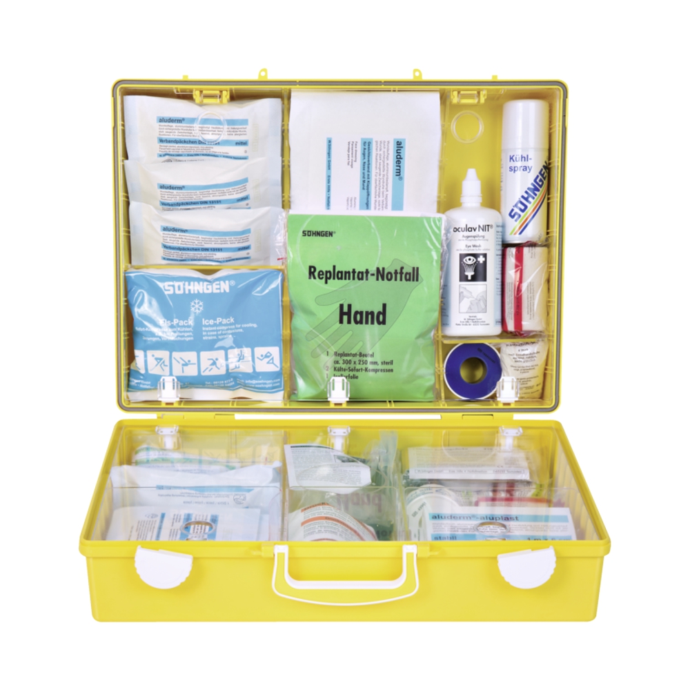 Erste Hilfe Koffer extra + INDUSTRIE SÖHNGEN Verbandkasten MT-CD gelb