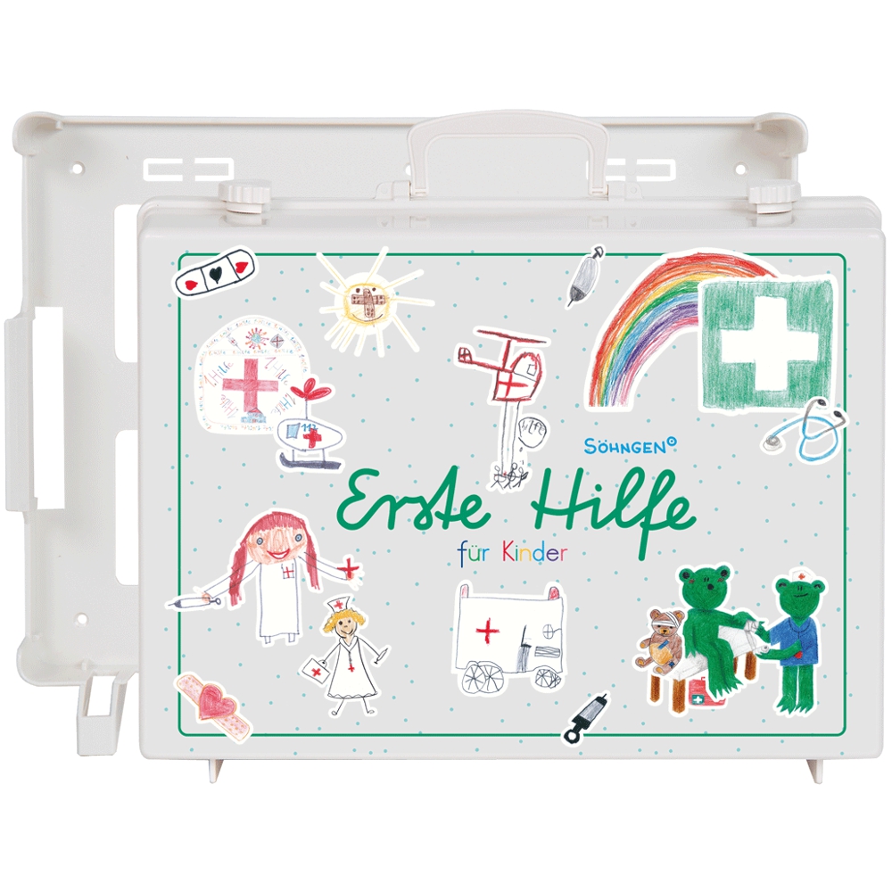 Kindern schon im jüngsten Alter einen Bezug zur Ersten Hilfe schaffen und somit die Versorgung für alle Beteiligten ein wenig stressfreier gestalten, ist das Ziel dieser Kofferserie. Die ansprechende Gestaltung nimmt den Kindern mögliche Ängste bei der Wundversorgung, animiert zum Lachen und soll für Ablenkung sorgen.