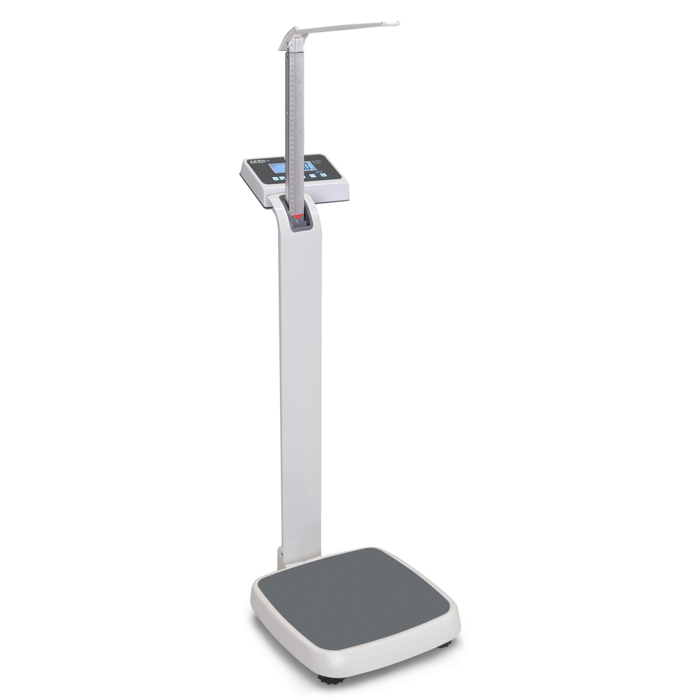 Säulenwaage mit Größenmessstab und Eichklasse III, ohne Netzadapter nur Batteriebetrieb, 2 hintergrundbeleuchtete Displays ( oben und hinten ), Datenschnittstelle und 2 Rollen für den einfachen Transport. Eichung nach Klasse III Medizinzulassung nach 93/42/EWG optional. Rückseitige Zweitanzeige. Im Stativ integrierter und ausziehbarer Größenmessstab mit Messbereich 88 - 200 cm. Robuste Ausführung für den täglichen Gebrauch im professionellen Umfeld. Ergonomische optimierte Bauform. Hygienisch und leicht zu reinigen. Sicheres und rutschfreies Aufstellen durch höhenverstellbare Gummifüße. Libelle zum exakten Nivellieren der Waage serienmäßig große Trittfläche mit rutschfreier und abriebfester Oberfläche aus Kunststoff für optimale Standsicherheit. Erschütterungsfreies Wägen - Vibrationen werden zur Ermittlung eines stabilen Wägewertes ausgefiltert - ideal für unruhig stehende Patienten. Data-Hold Funktion - bei Wägestillstand wird die Gewichtsanzeige automatisch bis zur Betätigung der HOLD-Taste für 10 Sekunden "eingefroren". So bleibt genügend Zeit den Wägewert in Ruhe abzulesen. Mutter-Kind-Funktion - das durch Wägung ermittelte Gewicht der Mutter wird per Knopfdruck auf Null gestellt. Anschließend werden Mutter und Kind gemeinsam gewogen. Das Gewicht des Kindes wird nun direkt im Display angezeigt. Besonders angenehm für Kleinkinder die dadurch sicher und geborgen auf dem Arm der Mutter gewogen werden können. 2 Rollen zum bequemen Transport der Waage. Feinanzeige - durch Tastendruck kann die Ablesbarkeit für 5 Sekunden um 1 Stelle erhöht werden. Technische Daten: Hinterleuchtetes LCD-Display. Ziffernhöhe 25 mm. Abmessungen.Wägeplatte B 365 x T 360 x H 80 mm. Gesamtabmessungen B 365 x T 450 x H 1020 / 2125 mm. Netzadapter (extern) serienmäßig. Datenschnittstelle RS 232 serienmäßig. Nettogewicht ca. 12.kg. Wägebereich maximal 250 kg.
