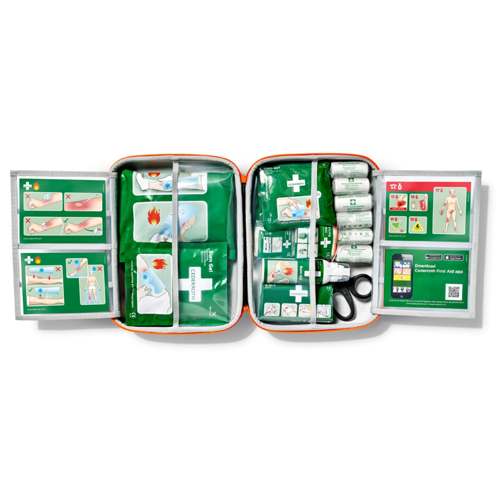 Die Burn Gel-Produkte bieten Abkühlung und Schmerzlinderung bei Brandwunden und Sonnenbrand. Mit Kompressen für Brandwunden in 3 verschiedenen Größen, einschl. einer großen Kompresse / Gesichtsmaske. Durchsichtige, ausklappbare Kunststoffhüllen sorgen für einen guten Überblick über den Inhalt. Ideal für Arbeitsplätze mit hoher Verbrennungsgefahr durch offenes Feuer, Flammen, heiße Oberflächen, Dampf, heiße Flüssigkeiten und Öfen. Beispiele: Bau-, Papier-, Metall-, Chemie- und Lebensmittelbranche sowie Gastronomie. Abmessungen Koffer: 305 x 86 x 245 mm.